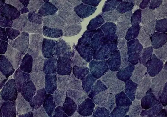 取材与冷冻切片:麻醉动物后,在偏离麻醉剂注射的位置选取肌肉取材部位,划开皮肤及目标肌肉,切下大小约为 10mm×5mm×5mm 的肌肉块,将其置于用生理盐水湿润过的纱布上。把装有异戊烷的离心管置于液氮中预冷至底部结霜,然后将肌肉块浸入预冷好的异戊烷中,匀速顺时针旋转 40-60 次,再迅速将其置于封口袋中并放入液氮中保存。最后使用冷冻切片机对冷冻的肌肉块进行切片。